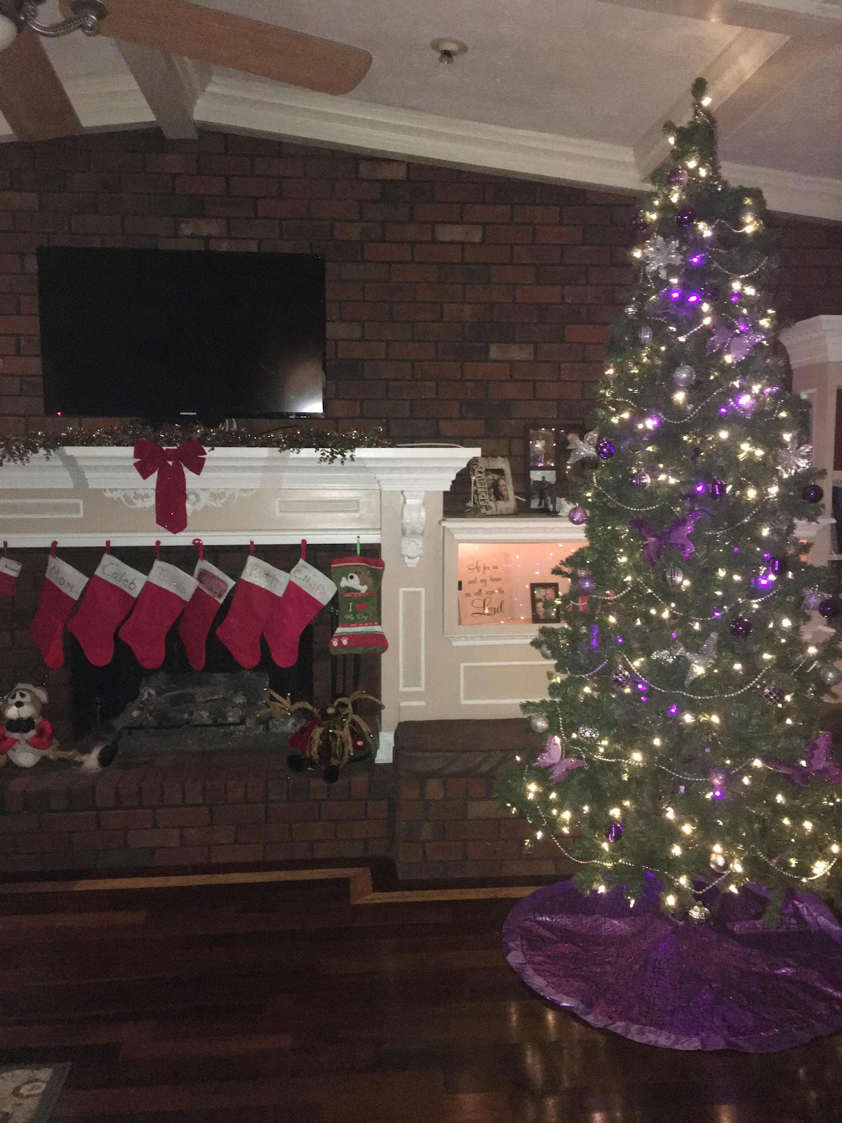 To look a lot like Christmas! Just couldn’t wait any longer to put up my new fancy tree I scored for half price after Christmas last year. Adorned it all up in my purple passion obsession this year. Love it!!