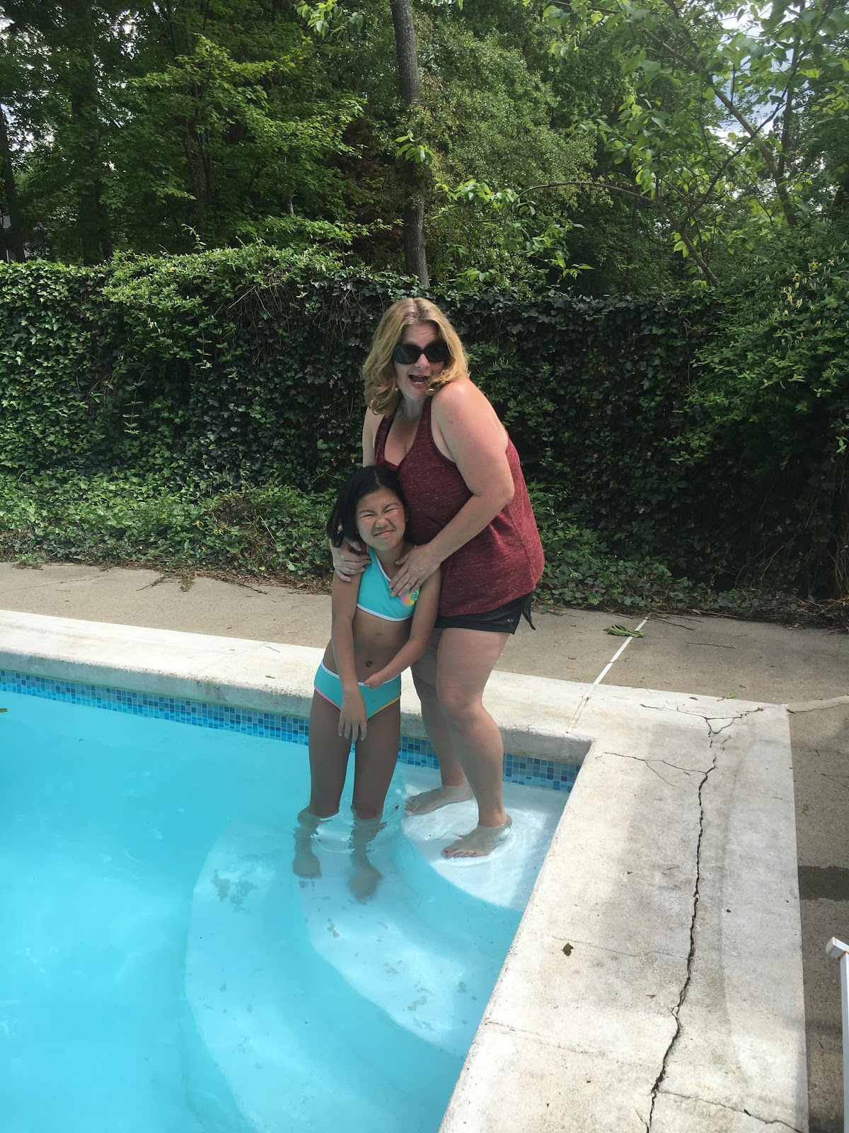 Water may be a bit chilly, but that didn’t stop Bug from testing it out a bit. Friday funday poolside:)
